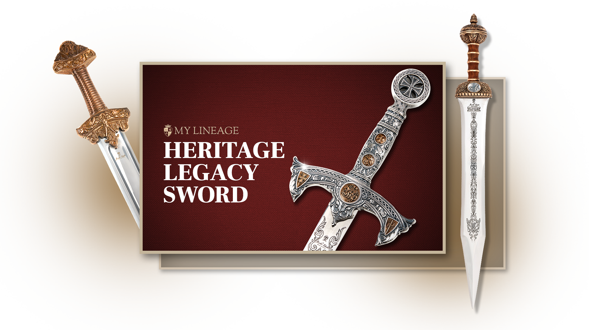 Your ceremonial sword, whether the Irish Claymore, English Broadsword, or Italian Roman Gladius is chosen and forged to embody the strength of your heritage. Your shield and signet ring bear your family coat of arms, painted and engraved by registered heraldic artists according to centuries-old law. Even your Family Purpose Declaration is customized, as you’ll choose five virtues that your children and grandchildren will inherit alongside your heirlooms, framed in ceremonial parchment by master calligraphers.